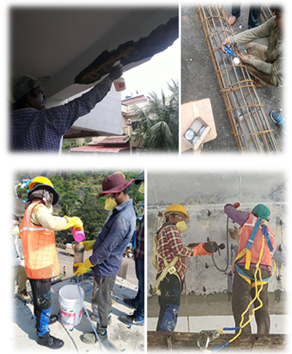 Chipping of Loose Concrete, Anticorrosive Treatment, Bond Coat Application, Injection Grouting, PMM, Microconcrete, Fiber Wrapping, Normal Plaster, Painting.